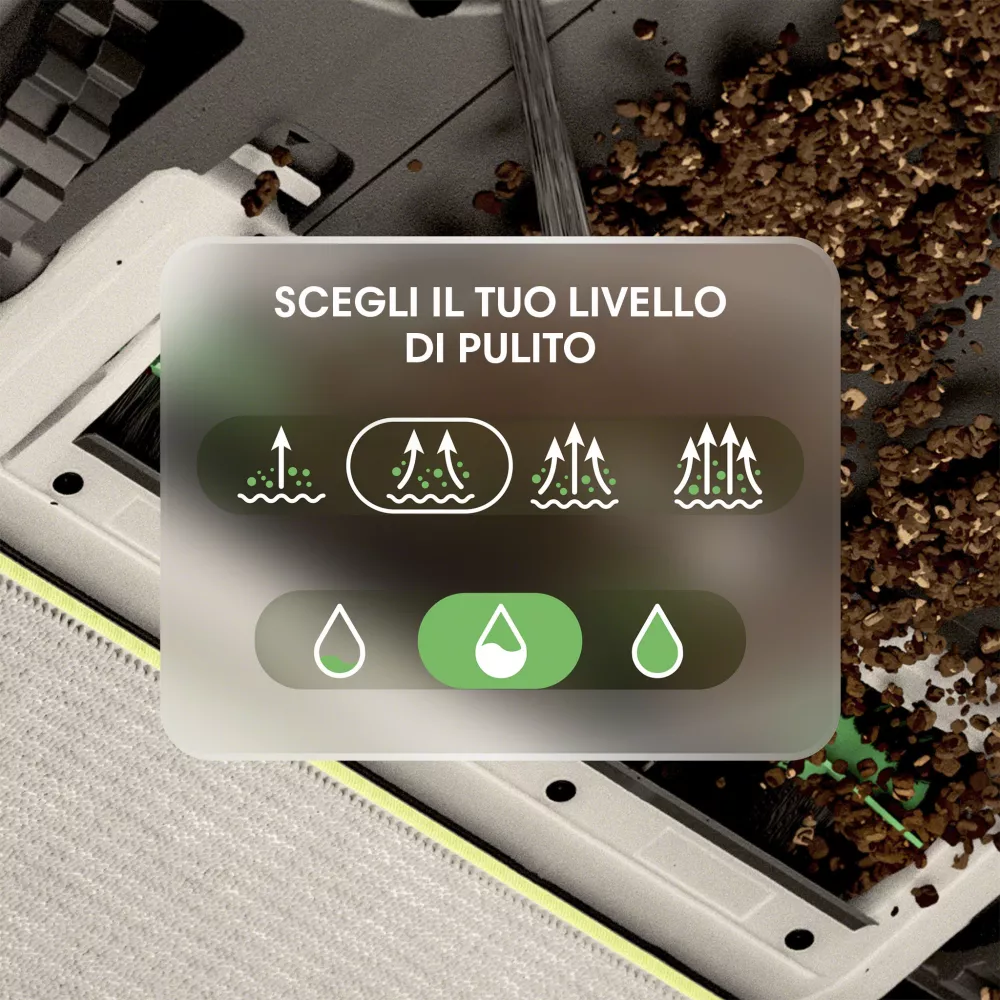 Scegli se aspirare, lavare, fare entrambe le cose in un unico passaggio, o se aspirare prima e lavare successivamente.