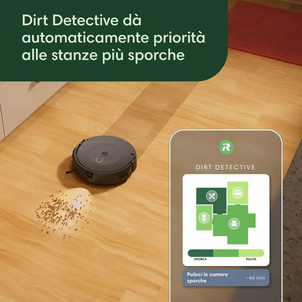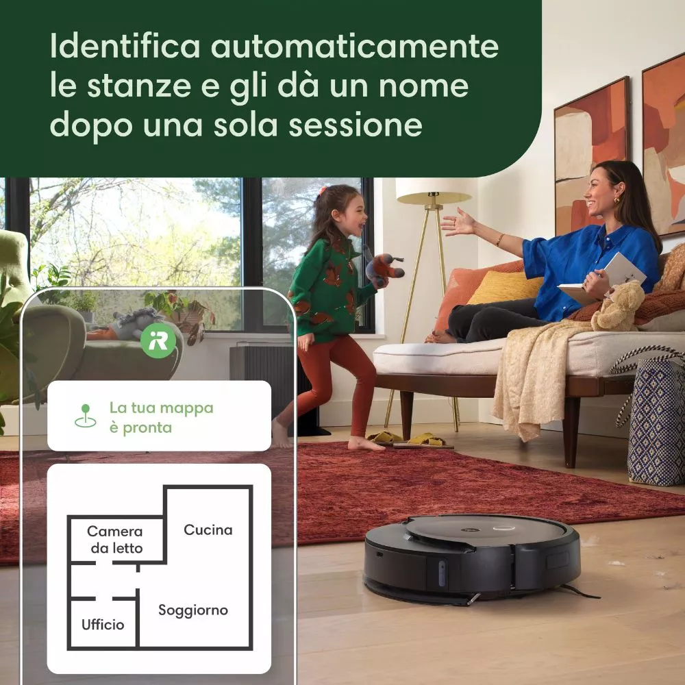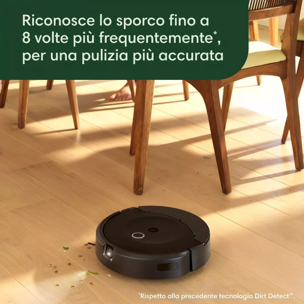 Progettato per una potente aspirazione e per il lavaggio, svuota automaticamente il suo contenitore e lava autonomamente il panno per la pulizia. Conosce inoltre le aree che si sporcano più velocemente in modo da pulirle a fondo ogni volta che occorre.