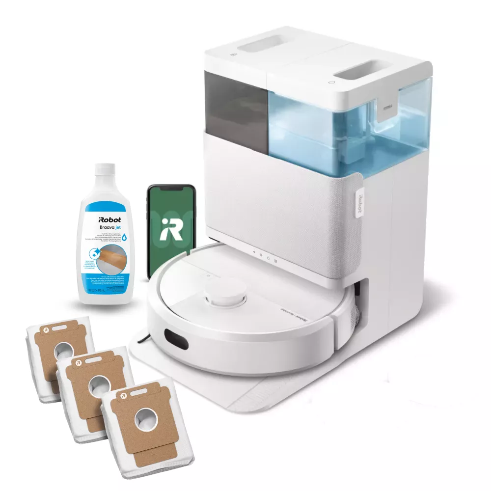 Questo bundle esclusivo include sacchetti di ricambio per la raccolta automatica della polvere e una soluzione detergente dedicata, pensata per ottimizzare il lavaggio e lasciare i pavimenti brillanti, freschi e profumati più a lungo.