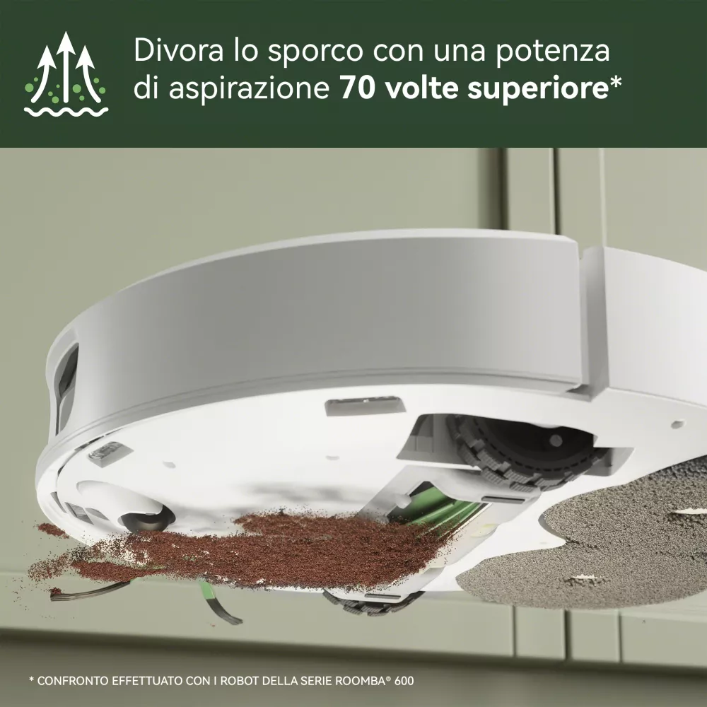 Compatibile con Alexa, Siri e Google Assistant⁶: puoi programmare le pulizie o comandarlo con la voce, ad esempio per pulire il soggiorno, la cucina o un’area specifica. - Design elegante e integrato