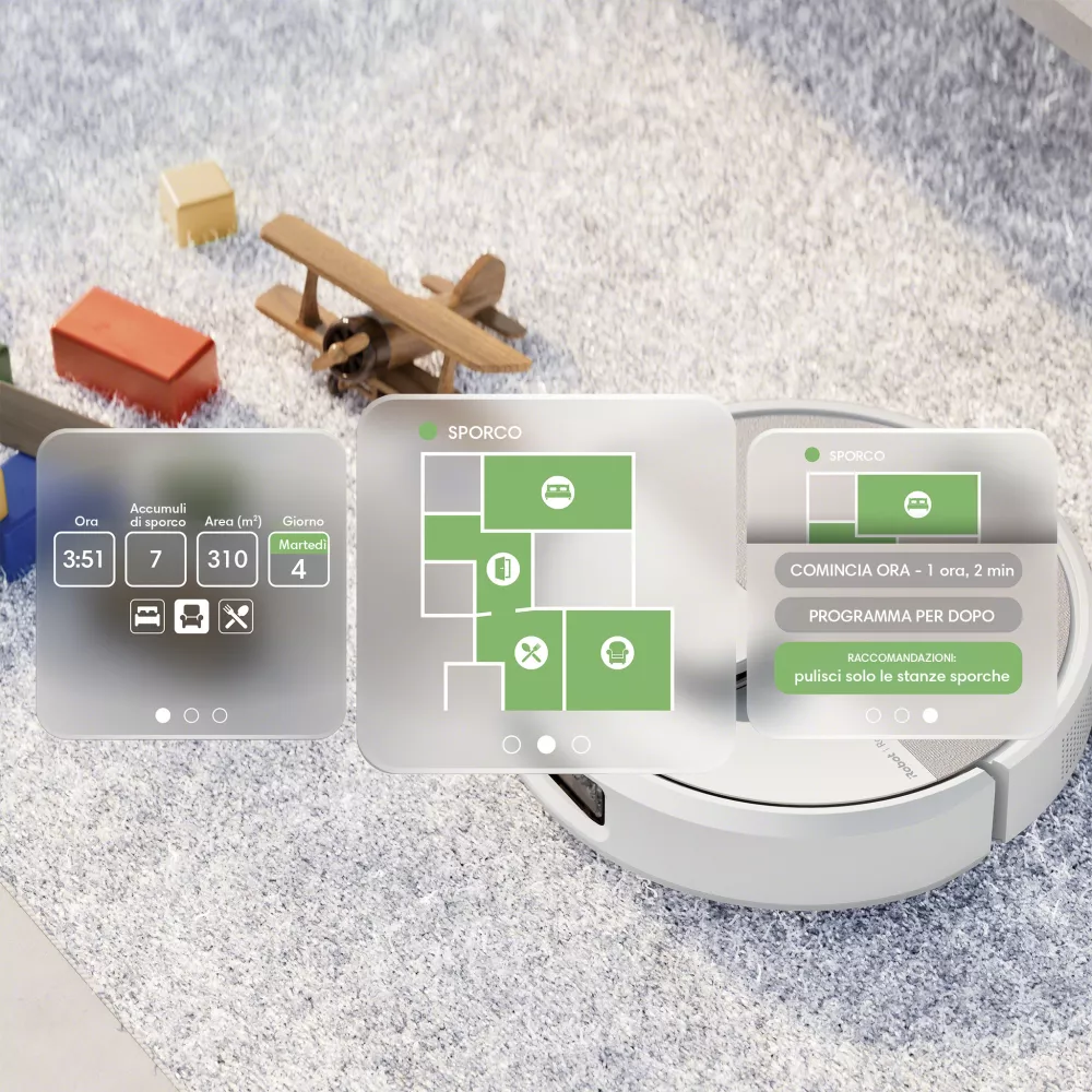 Sa esattamente quali stanze si sporcano più rapidamente, dà priorità a dove pulire e seleziona automaticamente le impostazioni giuste per offrire loro una pulizia profonda.