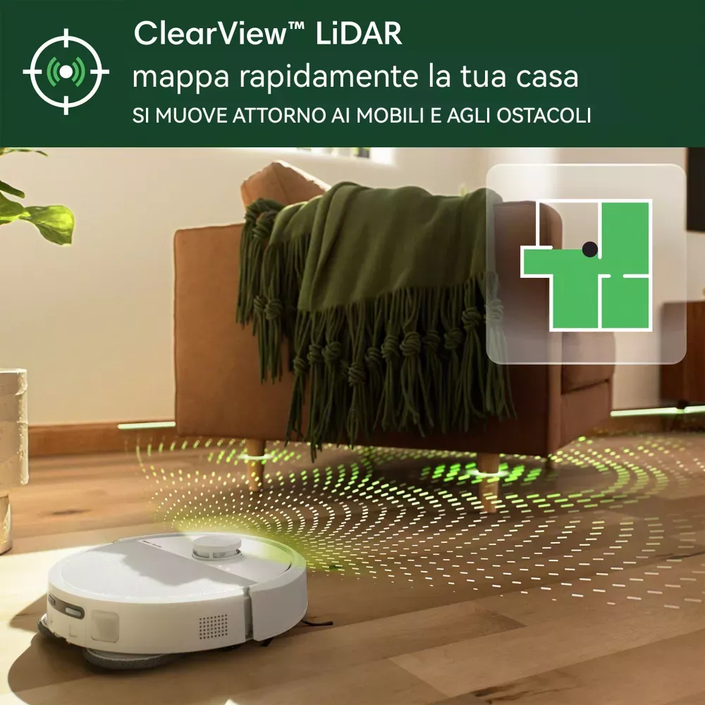ClearView™ LiDAR scansiona la tua casa per creare fino a 4 mappe, anche su diversi livelli della tua abitazione, che puoi personalizzare nell'app Roomba®. La mappatura richiede solo 9 minuti, e poi il tuo robot è pronto a muoversi senza problemi e a evitare ostacoli.