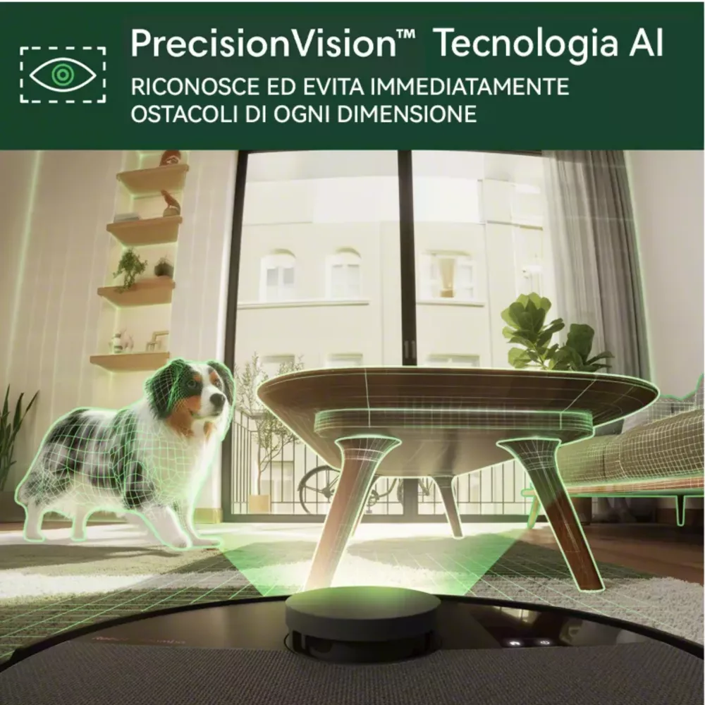 Un grande aspirapolvere va oltre la sola aspirazione (anche se questo robot è dotato di una potenza di aspirazione pari a 7000 Pa). Una spazzola in gomma flessibile e una spazzola per i bordi si fanno strada tra i peli degli animali domestici, estraendo sporco lungo le pareti e negli angoli, mentre la funzione Carpet Boost divora lo sporco dai pavimenti duri fino ai tappeti morbidi.